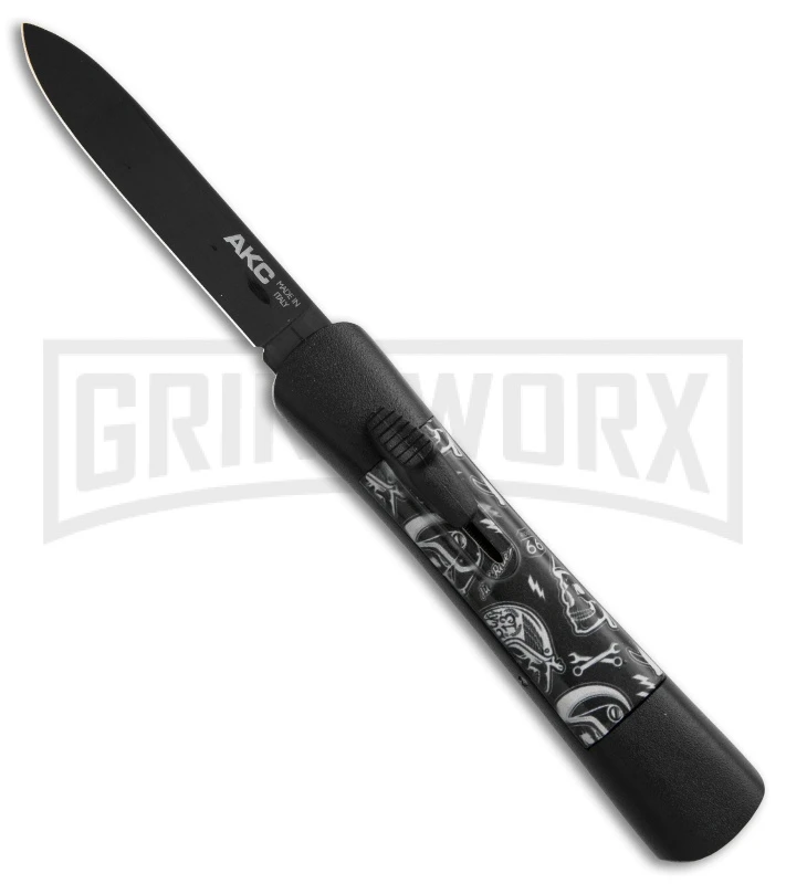 AKC Concord Route 66 Skull OTF Automatic Knife – Flat Grind Black Plain