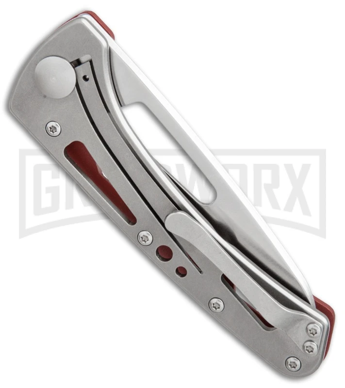 This Vertex model is outfitted with a red anodized handle and a satin finished blade.