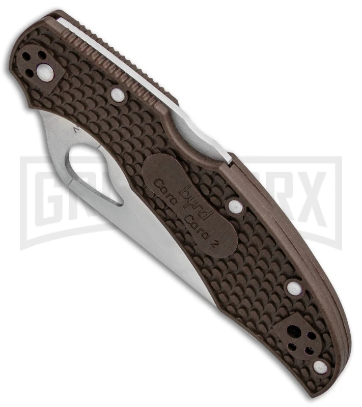 This Cara Cara 2 features a brown FRN handle and a drop point blade with a partially serrated edge.