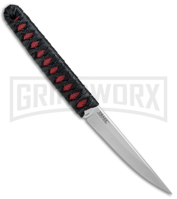 Based on the classic Japanese Kwaiken, this Obake fixed blade knife features a black Katana style nylon wrapped handle with a red synthetic rayskin underlay. The blade features a satin polished finish that complements the handle well. The Obake includes an injection molded sheath for secure and consistent retention.