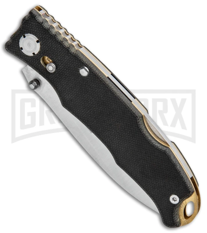 This Lake Laredo model has a satin finished blade with a partially serrated edge and a black G-10 handle. Add a rare discontinued CRKT model to your collection with the Lake Laredo folding knife. It has a uniquely designed handle from Ron Lake with G-10 scaless over brass finished stainless steel liners. The stainless steel blade comes with a satin finish and a thumb stud opener. A LAWKS safety secures the blade in the open position. These items are limited to stock on hand so act fast!