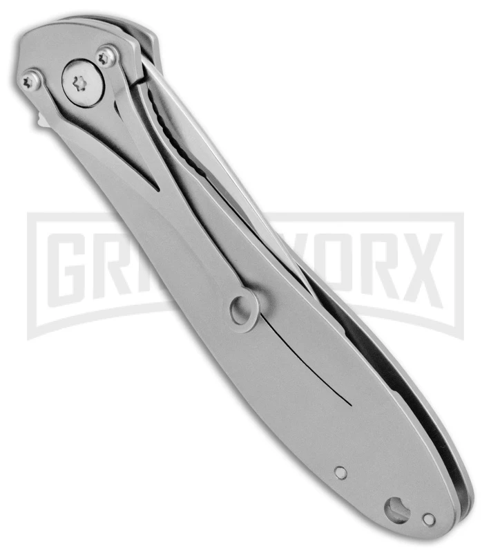 This Large Eros SS is a stainless steel handled version of Ken Onion’s original design. It’s a church knife, suit knife or gent’s knife that sits slim and discrete in the pocket. The flat stainless steel handle lends itself to customization and engraving. The blade flips open with ease thanks to the IKBS pivot ball-bearing system.