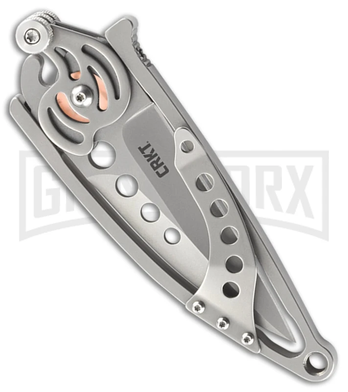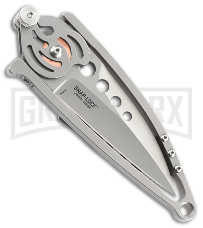 This Snap Lock model sports a bead blast finished blade with a plain edge. CRKT has changed the folding knife game again with this innovative Snap Lock folder, designed by custom knife maker Ed Van Hoy. The skeletonized handle provides a lightweight, yet sturdy frame for the blade, with a unique pivoting blade and snap lock mechanism. A tip-up pocket clip completes the impressive EDC design.