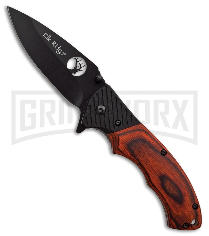 Elk Ridge Misty Mountain Dark Wood Manual Folding Knife – Black Plain