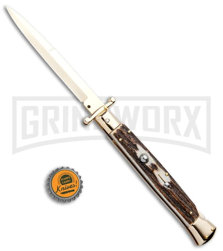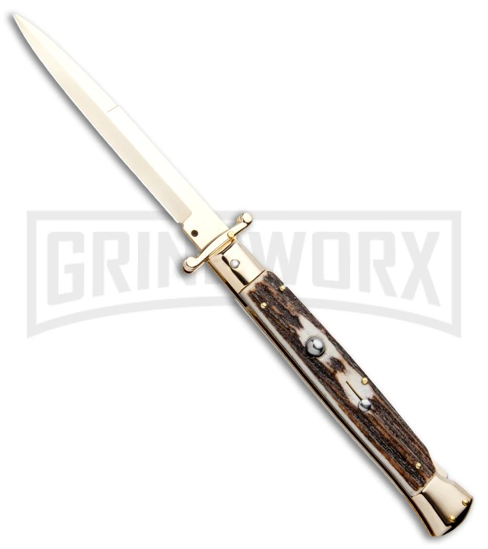 Frank B. 11″ Stag Italian Stiletto Swinguard Gold Plated – Bayonet Gold