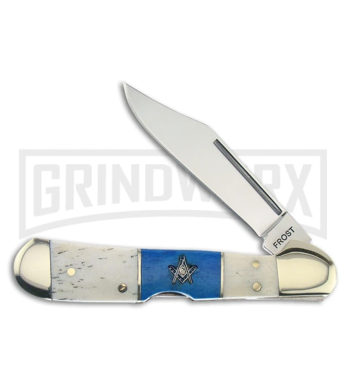 Frost Cutlery Masonic Blue/White Smooth Bone Folding Knife