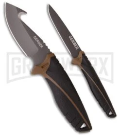 A packable dual knife kit for the modern hunter, the Myth Field Dressing Kit brings the same sleek design as its namesake family while housing two field dressing essentials – the Myth Fixed Blade Pro with Gut Hook knife and the Myth Compact Fixed Blade knife. Packaged together in a slim, piggyback-style puncture-proof sheath, this hunting kit will fit neatly into your pack or on your belt loop. The base of the sheath houses a built-in carbide sharpener for sharpening on the go. The Myth Field Dressing Kit is the ultimate hunting companion.