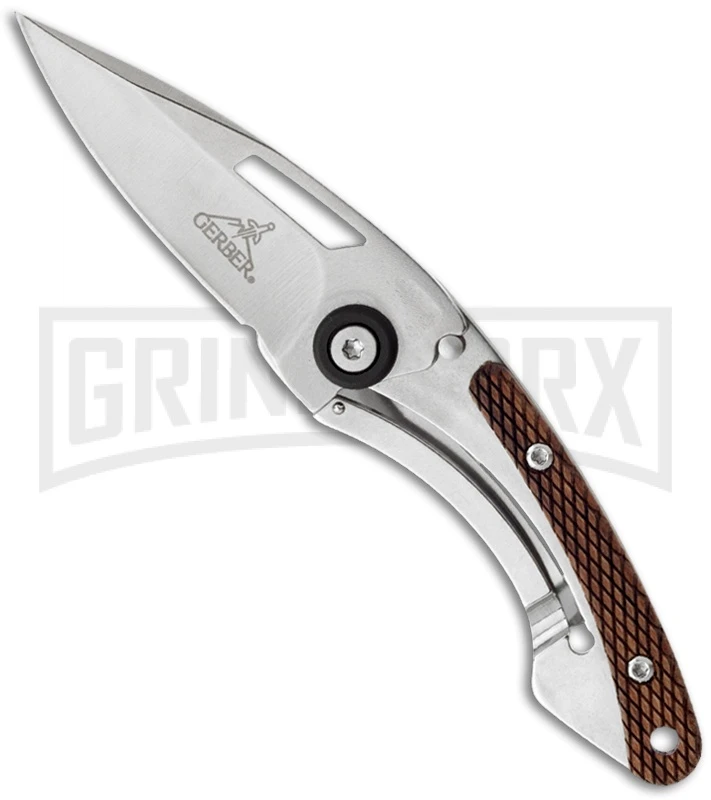 The Trendy is a stylish frame lock design with a checkered wood scale for grip and a tip-down carry pocket clip for everyday carry. The blade is satin finished stainless steel with a thumb notch for opening.