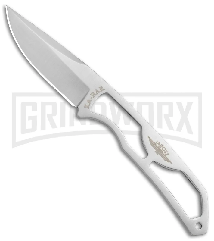 The Ka-Bar Jarosz “Rambler” Skeleton fixed blade is an easily concealed everyday carry neck knife. The “Rambler” is made from a solid piece of 5Cr15 stainless steel with a satin finish and a sharp clip point blade. Includes a hard plastic sheath for secure carry.