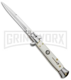 Milano 9″ White Italian Style Automatic Knife – Bayonet Satin