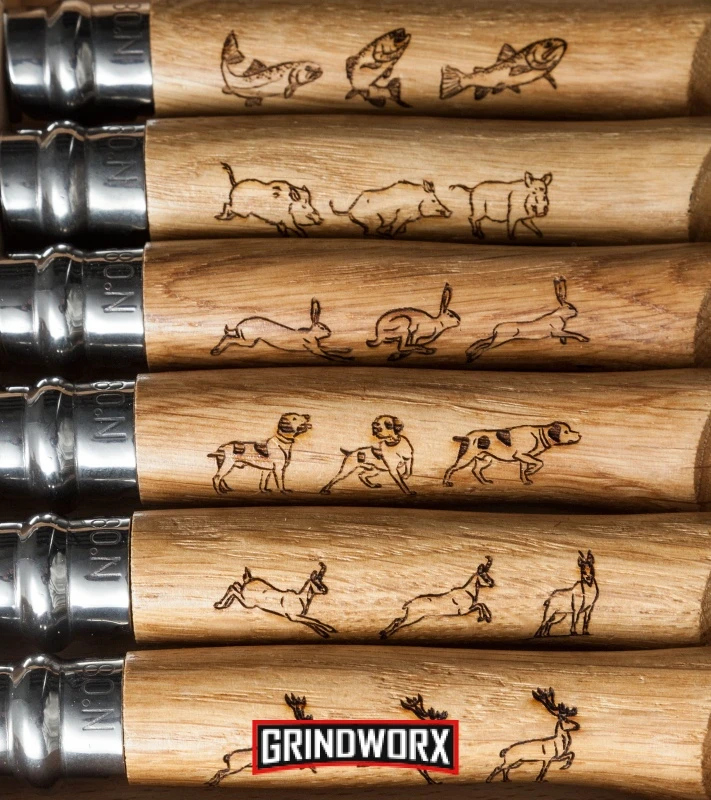 This collectors set of Opinel No. 8 knives features the six animals of the “Nature” series. Each knife has a stainless steel blade and Beech wood handle. Includes the Virobloc safety ring that locks the blade in the open and closed positions.