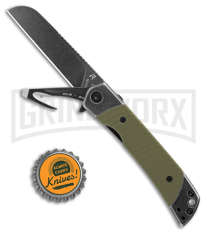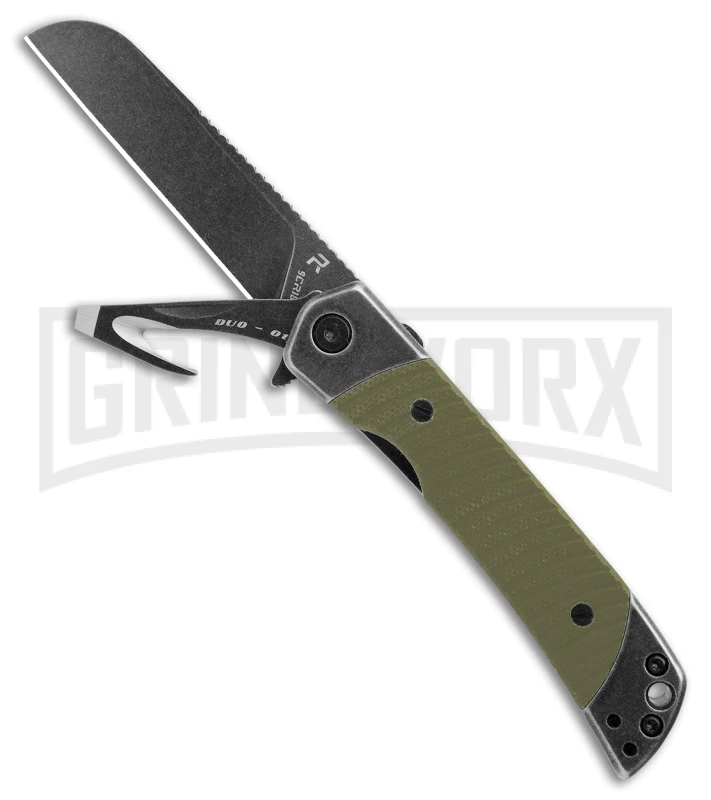 The REVO Duo is an EDC knife that is tough and lightweight and opens easily with the flipper tab. This knife does include an additional rescue hook/seatbelt cutter with a screw driver making this build a unique multi-tool.