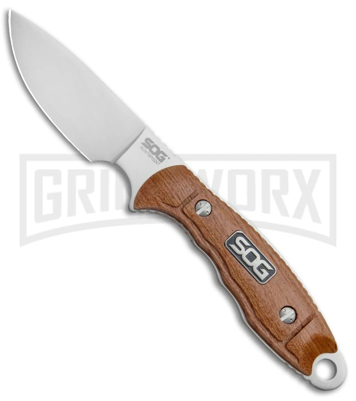 SOG Huntspoint Skinning Wood Fixed Blade Knife – Satin Plain